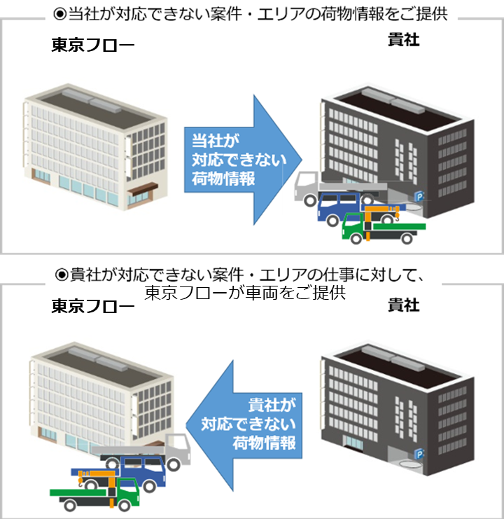 東京フローは東京に拠点と起き、主に関東圏内への輸送を行う運送会社です。
